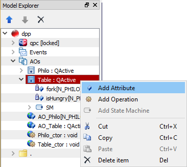 A class attribute can only be added to a Class. To add a class attribute, in the Model Explorer right-click on the Class to which you want to add a new class attribute and select Add Attribute from the popup menu.
