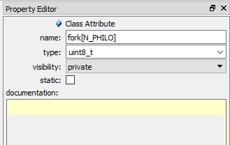The free attribute initializer shown on the right-hand side of the Free Attribute Property Sheets above generates the following code (directive $define${AOs::AO_Philo[N_PHILO]}):