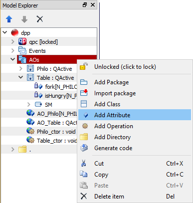 A free attribute can only be added to a Package. To add a free attribute, in the Model Explorer right-click on the Package to which you want to add a new free attribute and select Add Attribute from the popup menu.