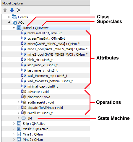 Classes are the main entities from which you build your models in QM™. Also, in QM™, only a class can have a State Machine.
