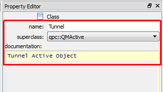 The documentation box in the Class Property Sheet allows you to provide documentation to the class. The QM code generator parses the documentation box and can generate comments from it in the auto-generated code.