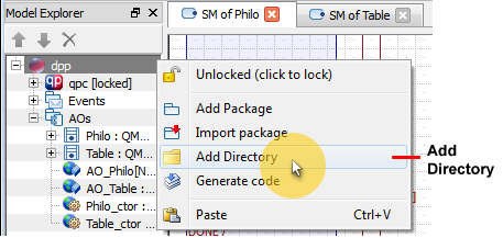 To add a new directory item, in the Model Explorer right-click on the model item, a package item, or directory item and select the "Add Directory" in the popup menu, as shown below: