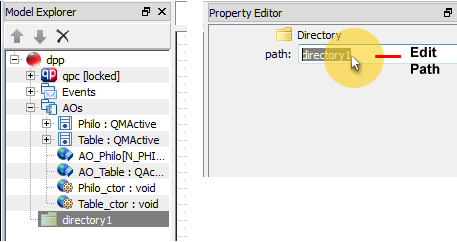 The only editable attribute in the Directory Property Sheet is the path relative to the QM Model File.