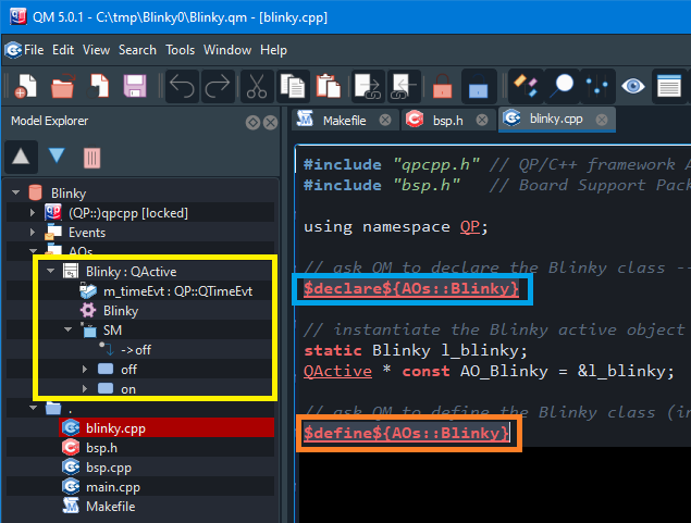 The general syntax of the code-generating directives in the QM file templates is $<directive> ${<model-item>}, where $<directive> is one of:
