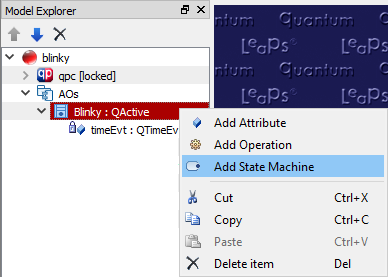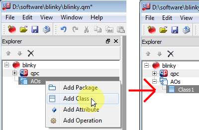 - In the Model Explorer right-click on the Blinky class and select from the popup menu.