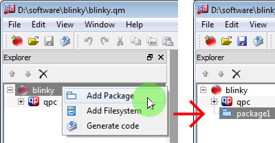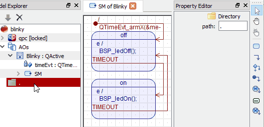 - In the Model Explorer right-click on the blinky model item and select in the popup menu. This will be the directory where your code will be generated. The path of the directory relative to the QM Model File can be edited in the Property Editor. Type