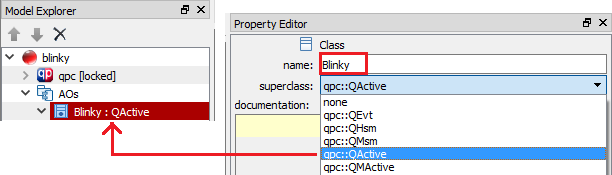 Blinky and the superclass to qpc::QActive.