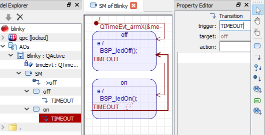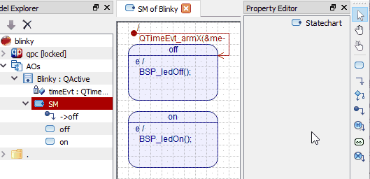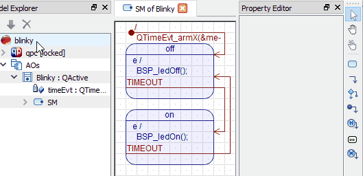 - The blinky model templates are available for all QP framework types (QP/C, QP/C++ and QP-nano), not just for QP/C. These model templates are a bit more advanced than the model you will create from scratch in the rest of this Tutorial. The models created from these templates are annotated with comments and documentation and it is highly recommended that you get familiar with the structure of these models.