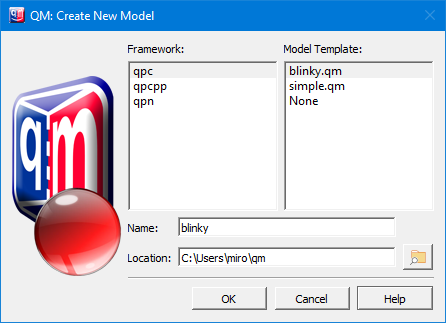 .qm extension will be added automatically. For this tutorial, rename the model to blinky.