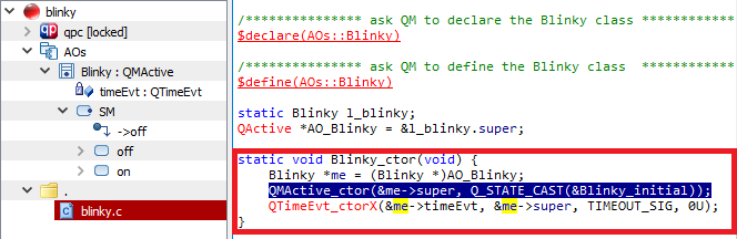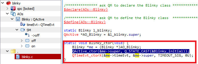 QMActive_ctor() (for the QP/C framework) and QMActive::QMActive() (for the QP/C++ framework).
