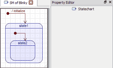 Every state machine needs the top-most initial transition, which originates in an initial pseudostate (black dot) placed directly on the drawing canvas and points to the first active state after the state machine gets initialized.