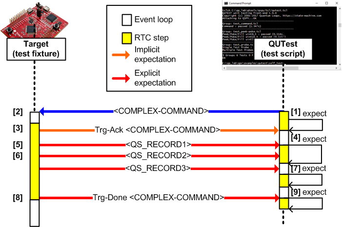 Of course, it is not a coincidence that the RTC processing of QUTest matches exactly the RTC processing in event-driven systems of state machines. And the good news here is that for all interactions with state machines, the RTC output generated by a test fixture will correspond exactly to the RTC step in the state machine.