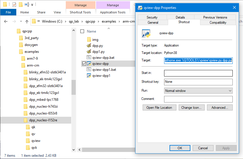 cust_script - optional customization Python script for your specific target system. If not specified, qview will provide only the generic user interface for interacting with the target (e.g., reset, setting QS filters, posting events, etc.)qspy_host[:udp_port] - optional host-name/IP-address:port for the host running the QSPY host utility. If not specified, the default is 'localhost:7701'.local_port - optional the local UDP port to be used by "qview". If not specified, the default is '0', which means that the operating system will choose an open port.Windows Hosts